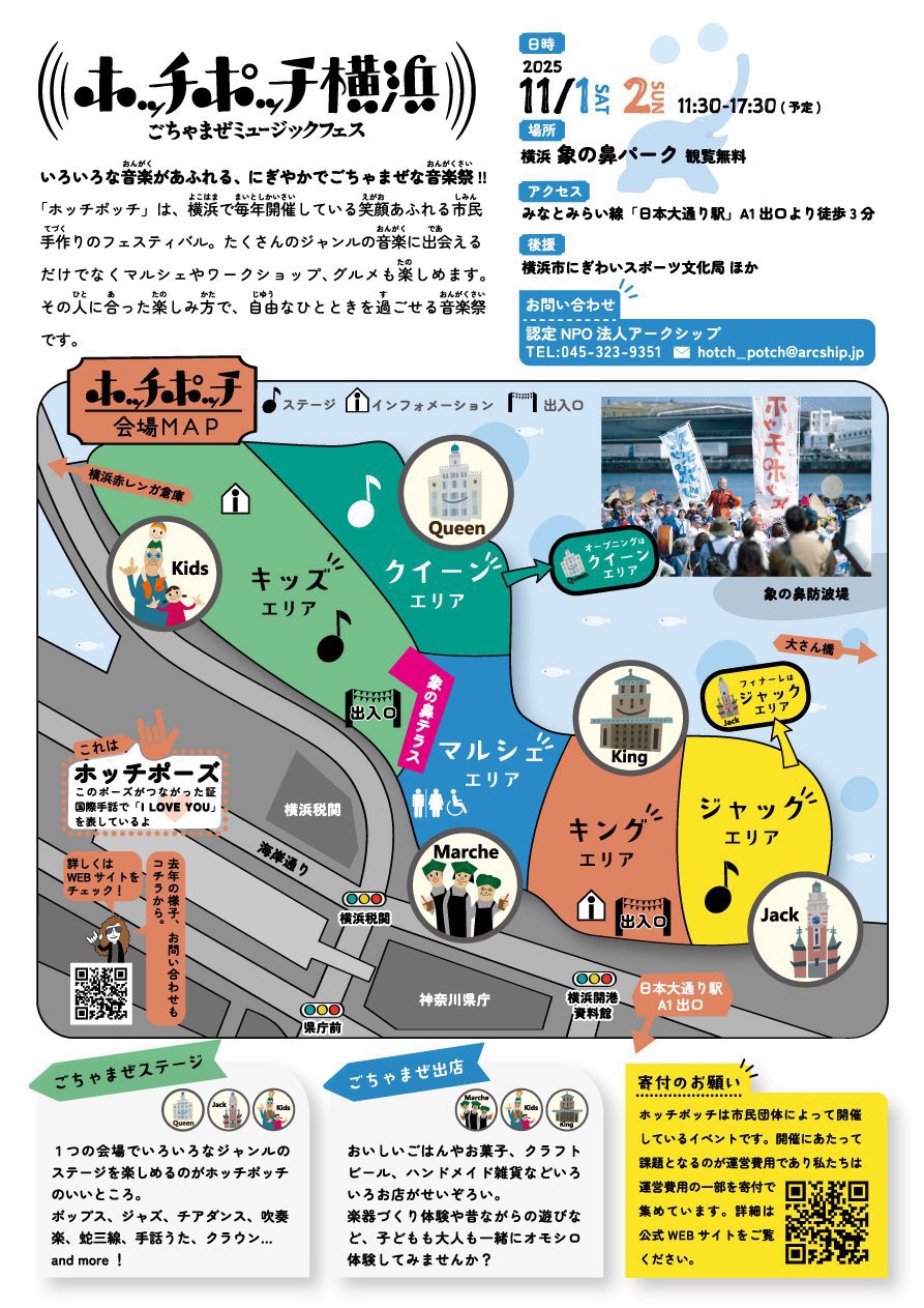 横浜・象の鼻パークで開催される『ホッチポッチ横浜 ごちゃまぜミュージックフェス』 に出演いたします!