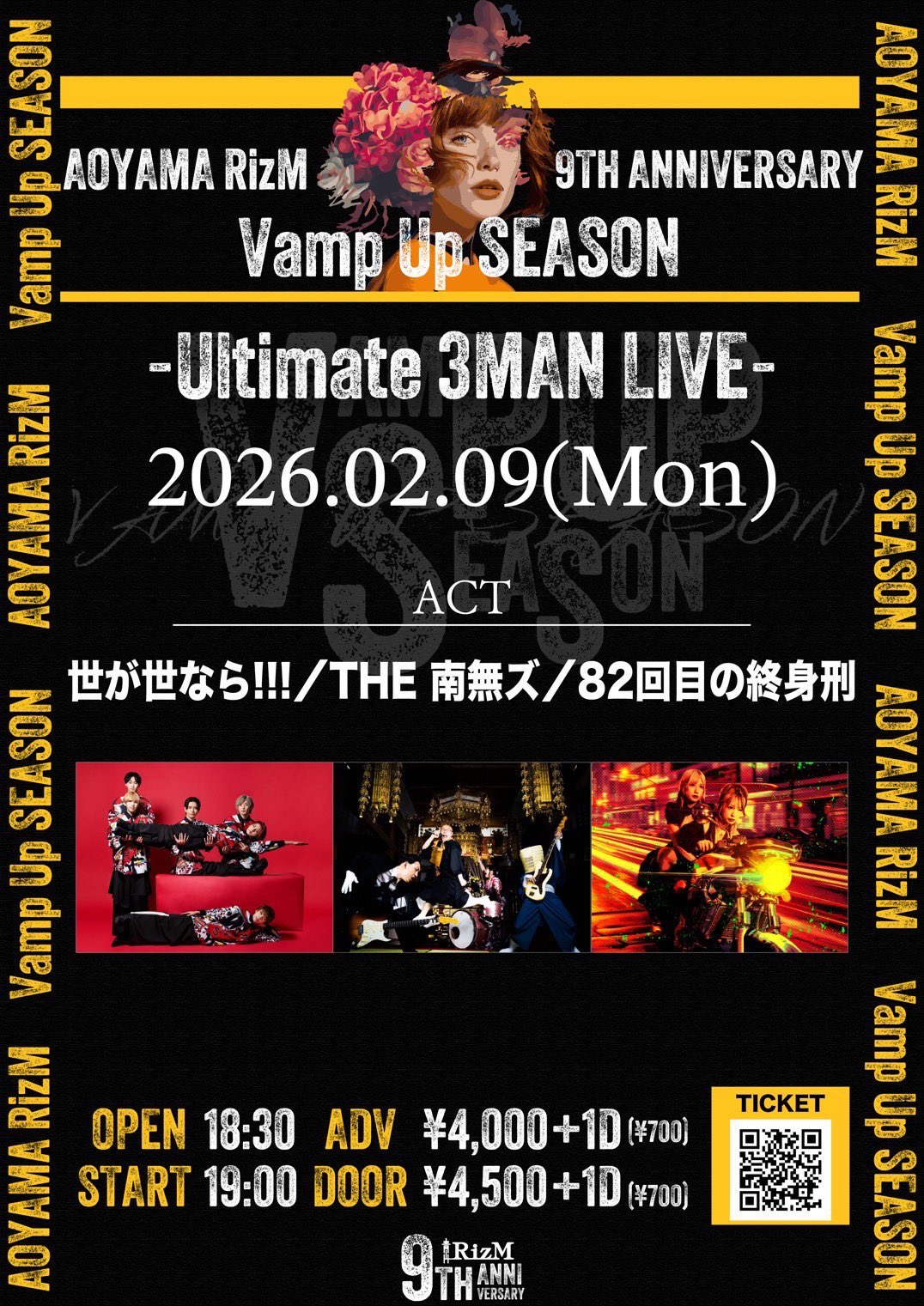 青山RizMの9周年をお祝い!豪華3MANライブにTHE 南無ズが出演します!